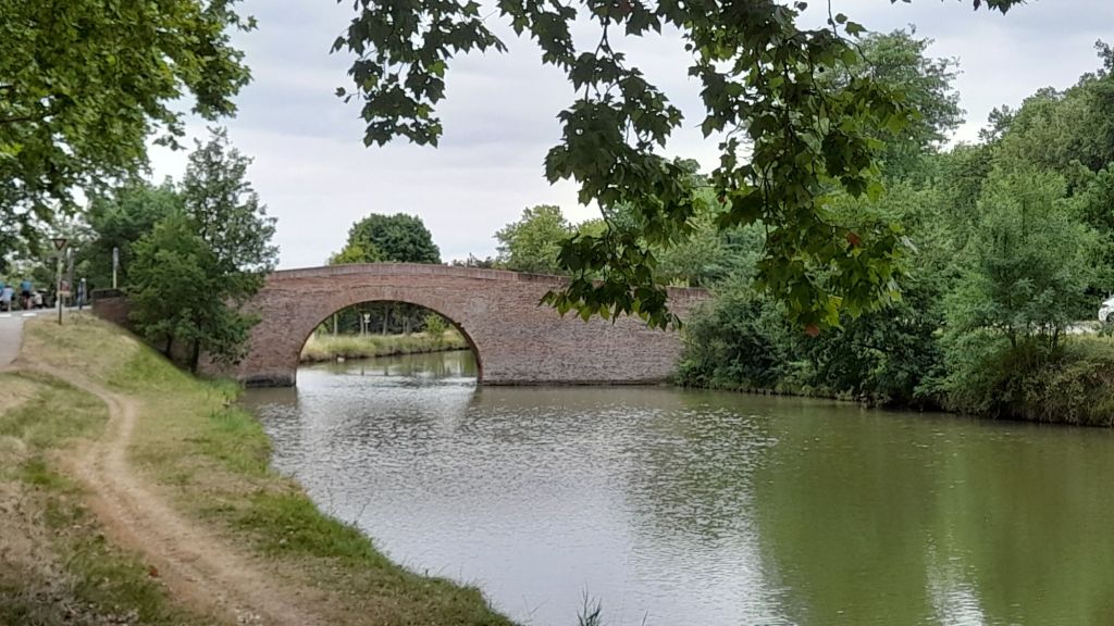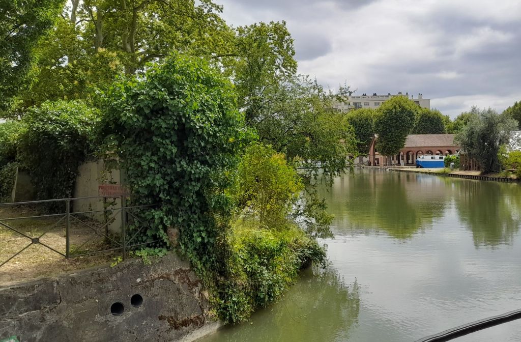 Je ne vous avais pas encore présenté, sur ce blog, mon noble voisin : le Canal du Midi, par lequel je démarre une semaine de vélo avec un groupe d’amis. A l’ouest, il commence à Toulouse, au site dit de l’Embouchure où, jadis, il communicait directement avec la Garonne (site qu’il partage avec ses deux frères cadets : le petit canal de Brienne, du XVIIIème siècle, et l’austère canal latéral à la Garonne, du XIXème). Après ses quelques premiers km très urbains, il révèle très vite son charme grand siècle, comme ici où il communique avec une cale de radoud où pouvaient être réparés les bateaux :