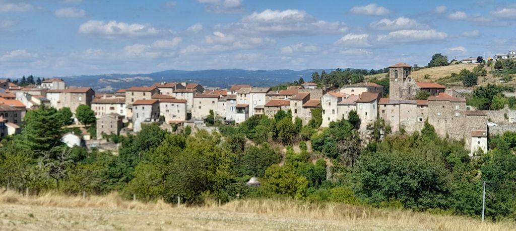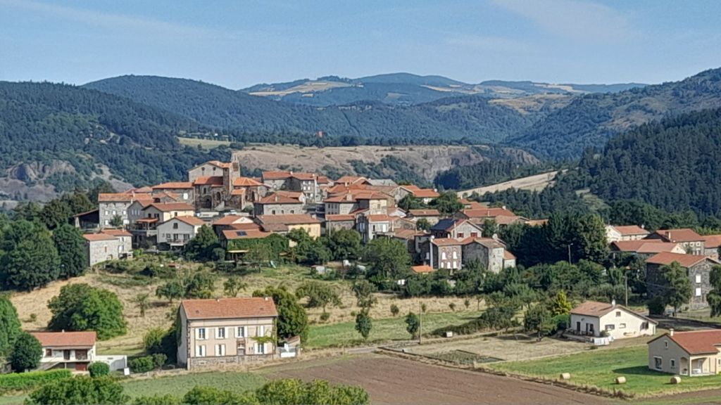 ou sur un éperon dominant celle-ci,  et couronnés de leur massive église en pierre brune (basalte ?) comme ici, St-Ilpize, sont saisissants de caractère :
