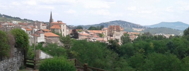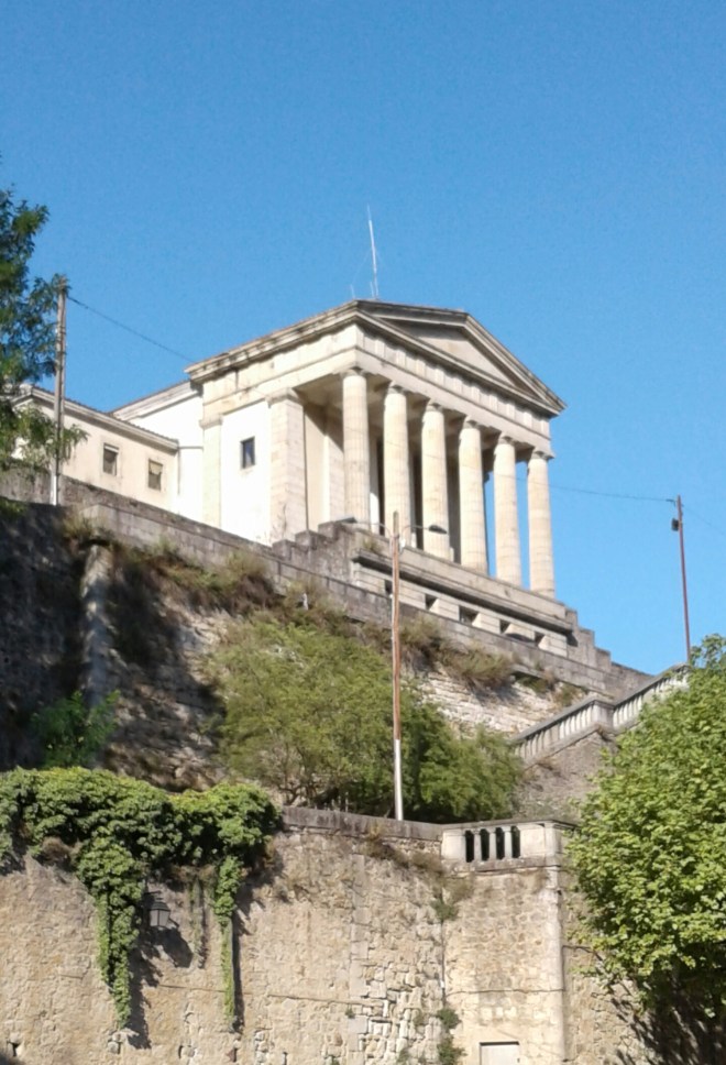 Non, je ne me suis pas subitement projeté en Grèce et ceci n’est pas l’Acropole mais, tout simplement ( ! ) le palais de justice de Largentière, une de ses autres minuscules sous-préfectures (on est toujours en Ardèche) que je rêvais de visiter. De fait, au pied de ce modeste Parthénon se blottit, au pied de son château, la ville ancienne (laquelle constitue la quasi totalité de l’agglomération), qui tire son nom, et sa prospérité ancienne, de mines d’argent.Pour fêter ce 25 juillet (en remerciant, ici, ceux qui m’ont adressé un message de voeux pour ma fête, et sans accabler les autres de ce terrible oubli !) j’ai, d’ailleurs, passé la soirée en compagnie d’un fils d’amis qui se forme à la boulangerie artisanale et bio à proximité ; j’étais, moi-même hébergé, dans la même vallée, dans le camping d’une ferme pratiquant la permaculture, et au bord d’un torrent bien rafraîchissant. Tout cela est bien représentatif de ce que l’on trouve dans cette région.25 juillet 2019